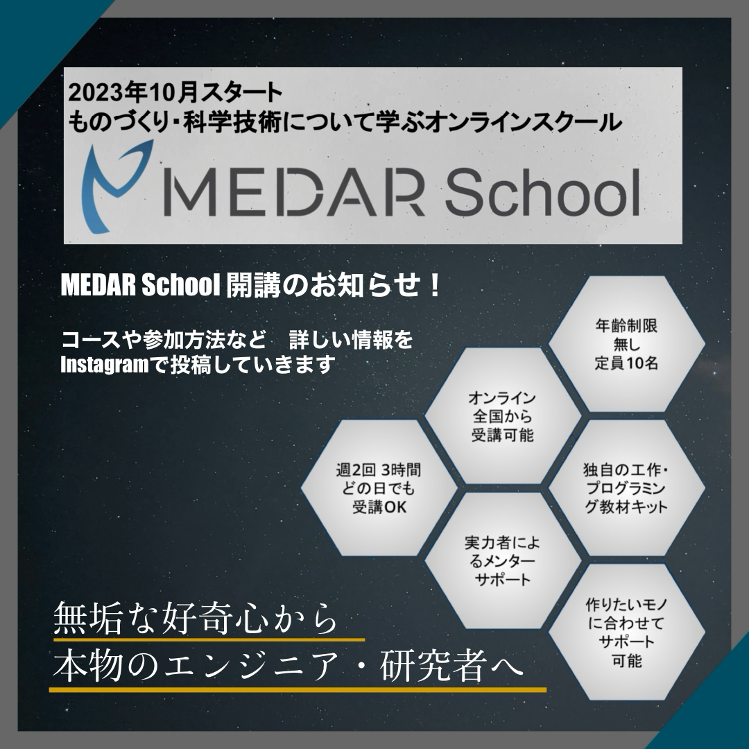 2023年10月からスタートする「ものづくり・科学技術について学ぶオンラインスクール」MEDAR Schoolについて、instagram での投稿を継続的に行なっていきます! 毎週金曜日18時に投稿するので、ぜひチェックしてみてください。