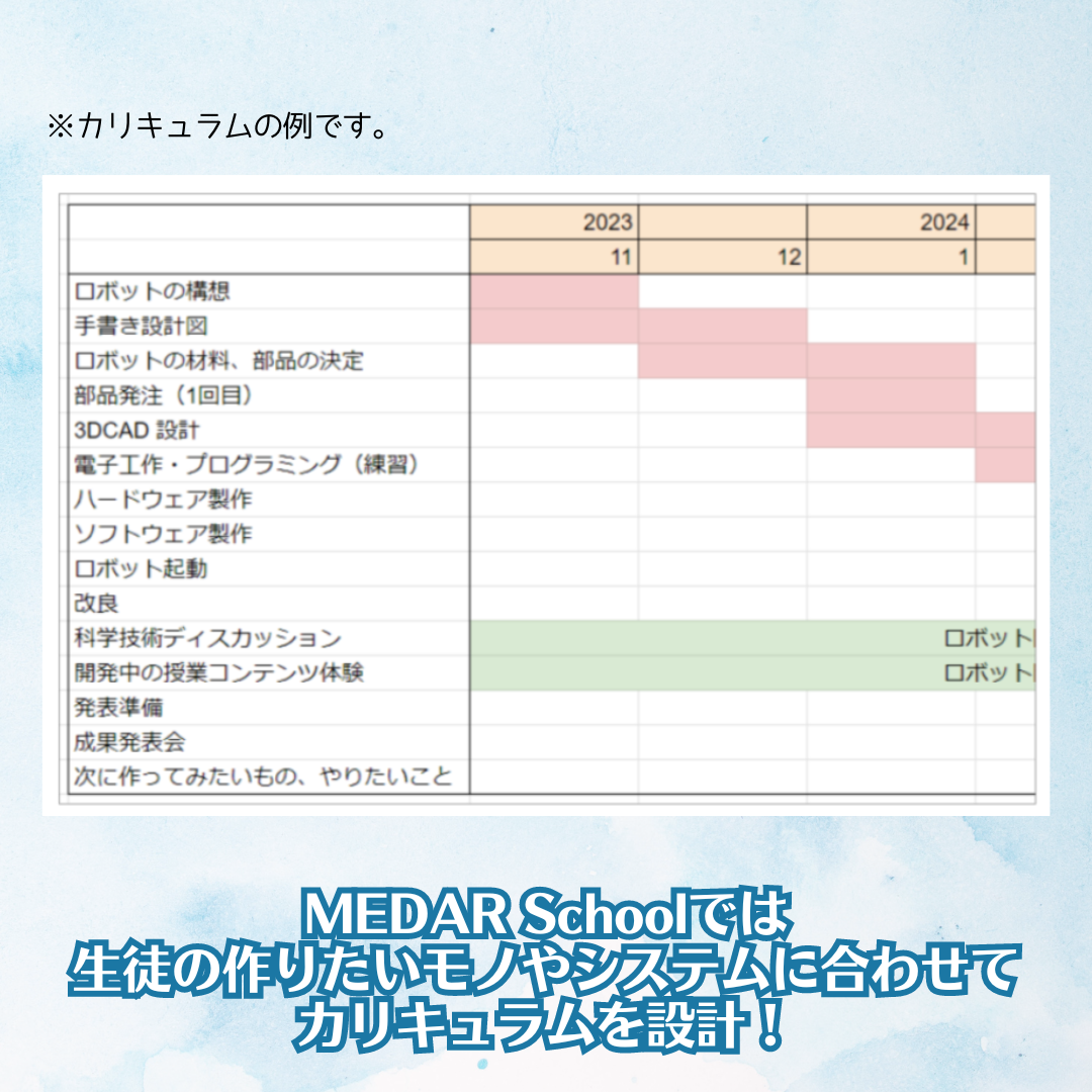 MEDAR Schoolでは、新規入塾者に「何を作ってみたいか」「どんなことができるようになりたいか」を聞き、その目標を達成するために、経験豊富な講師がカリキュラムを設計します👀✨