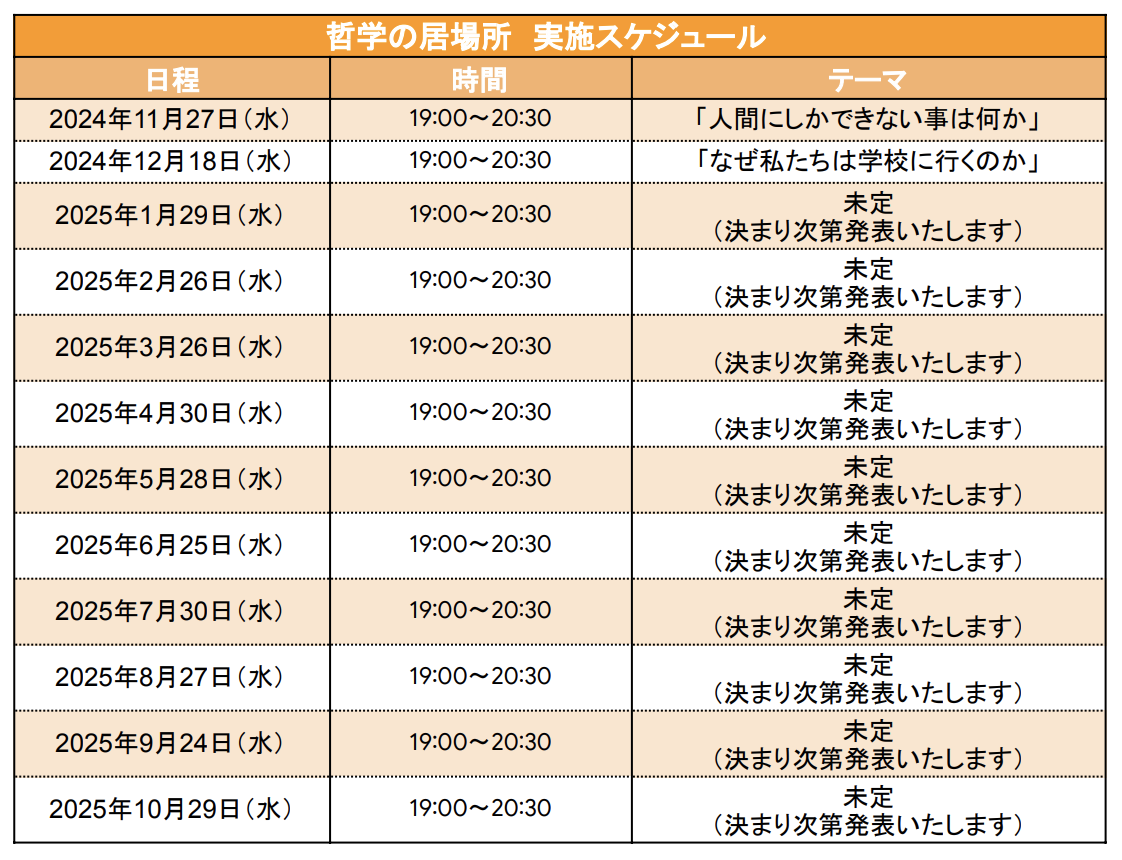 月に1度、90分程度、オンラインで哲学対話を実施いたします!