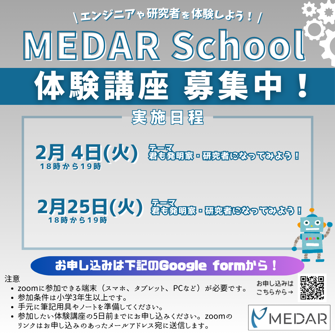 2月のMEDAR School 体験講座のお知らせ