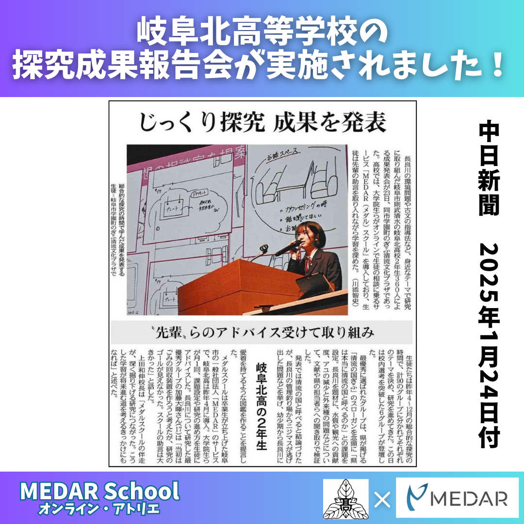 1月23日、MEDAR School連携校である岐阜北高校の探究成果発表会が「岐阜清流文化プラザ」で開催されました。