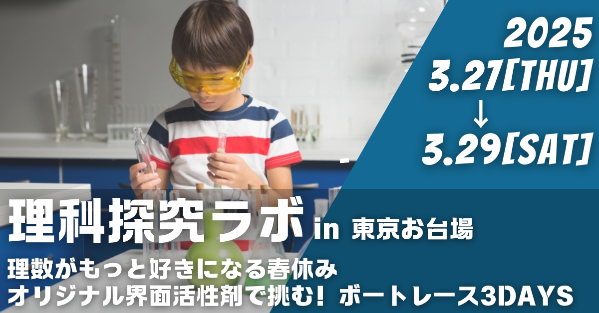 この度、炭素回収技術研究機構株式会社(CRRA)様のご協力の下、『理科探究ラボ 理数がもっと好きになる春休み オリジナル界面活性剤で挑む!ボートレース3DAYS』を開催することになりました。