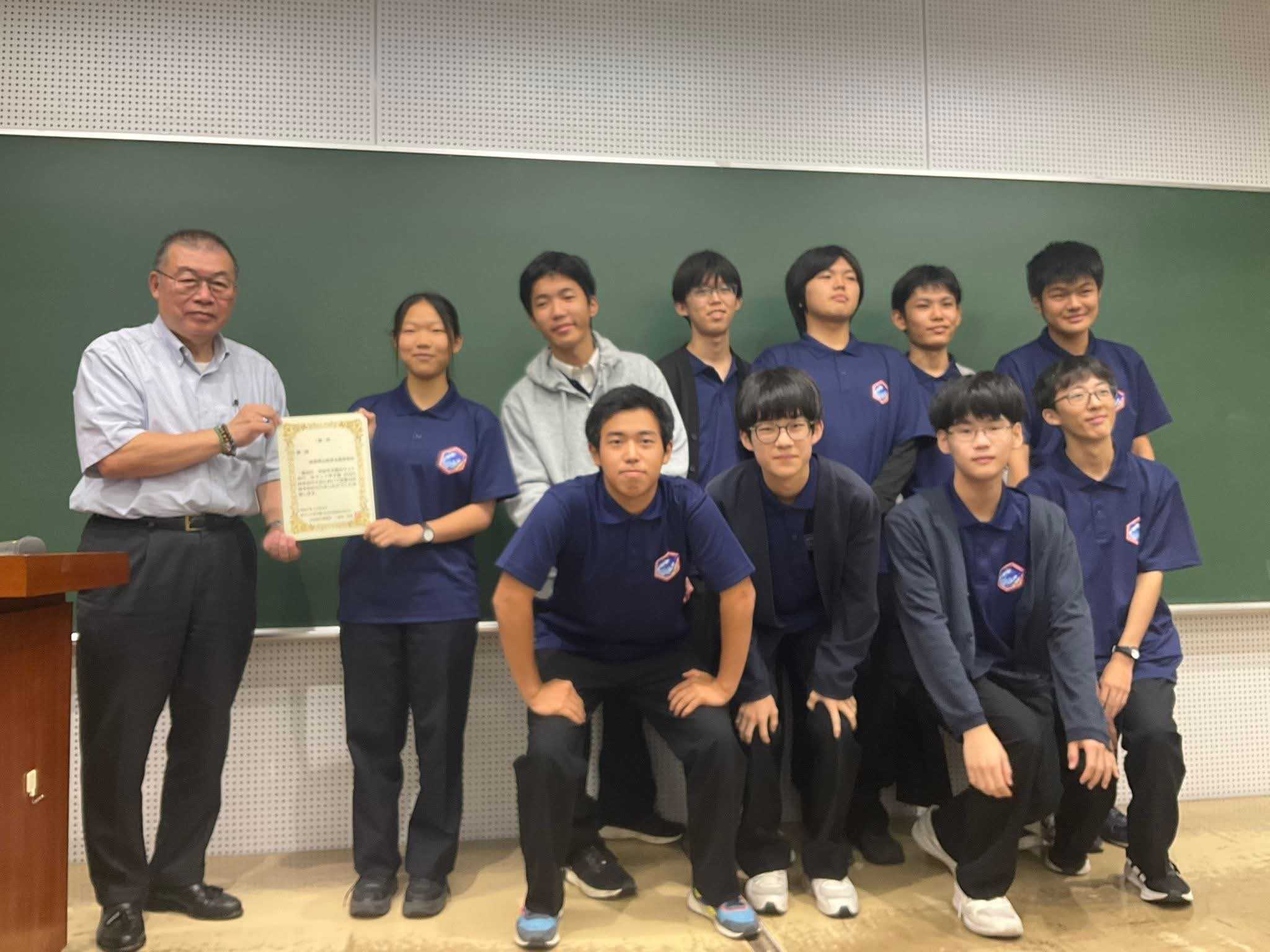 大会当日は悪天候により降下試験が中止となったものの、これまでの研究過程や探究の深さ、発表内容が高く評価され、見事優勝という成果につながりました。